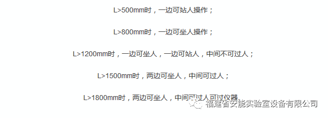 在做平面设计的时候,首先要考虑的因素是就是“安全”,实验室是最易发生爆炸、火灾、毒气泄露等的场所。我们在做平面设计的时候,应尽量地要保持实验室的通风流畅、逃生通道畅通。根据国际人体工程学的标准。我们做如下的划分以供参照:实验台与实验台通道划分标准(通道间隔用L表示):